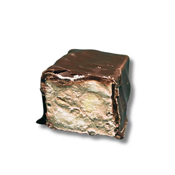Nonostante il nome possa suggerire diversamente, questo torroncino mantiene la base del classico friabile alla vaniglia. Pertanto, la sua peculiaritร risiede nella pregiata copertura di cioccolato fondente che lo rende unico nel suo genere.