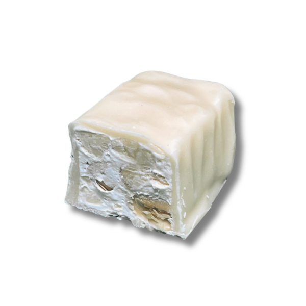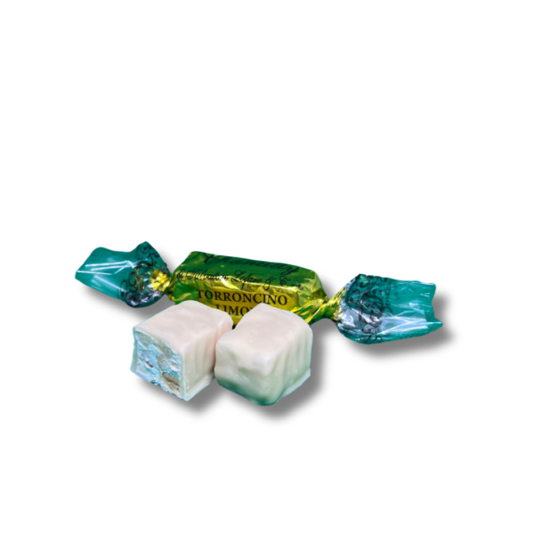 La base di questo delizioso torroncino è realizzata con mandorle di alta qualità, selezionate una ad una per garantire la massima eccellenza. I cubetti di limone candito, preparati artigianalmente, aggiungono note fresche e vivaci che si sposano perfettamente con la morbidezza dell’impasto.